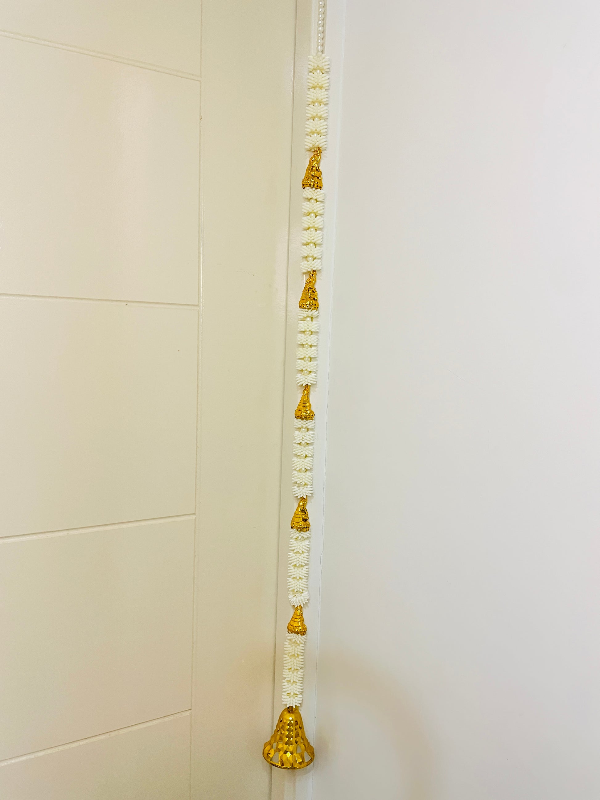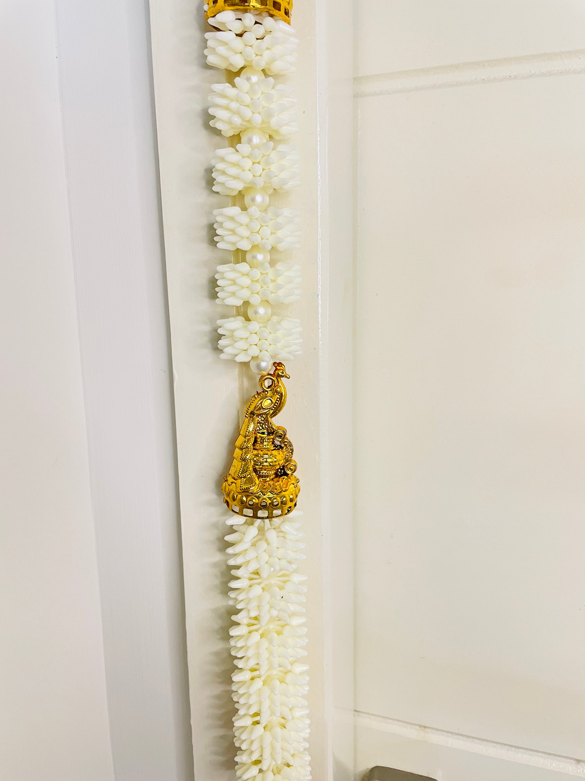 Made with premium-quality materials, the ladi features intricate golden embellishments and delicate white beadwork that resemble the purity of jasmine flowers. The result is a design that is both timeless and festive, offering an elegant look that elevates your home décor instantly.