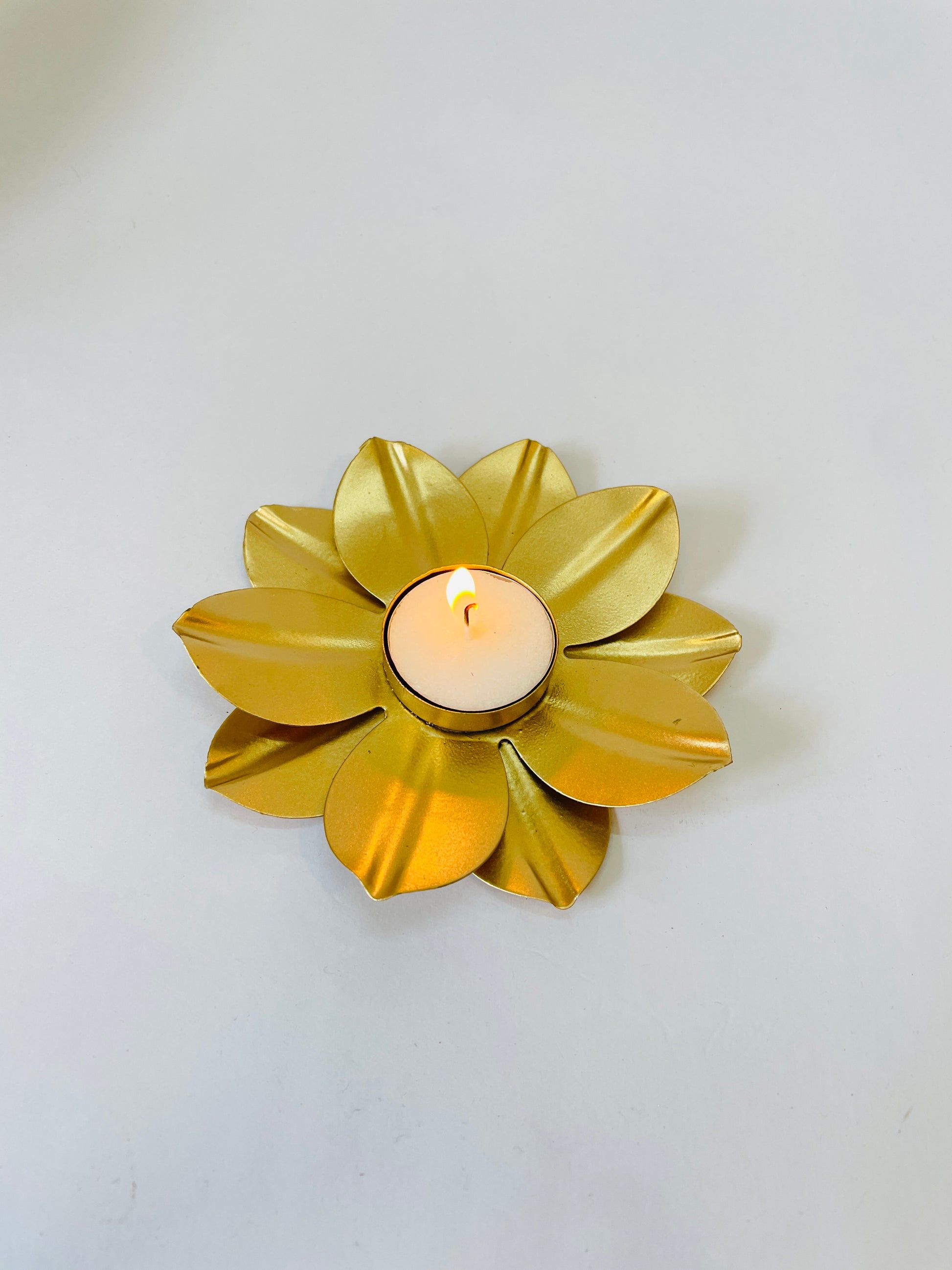 Bring a touch of elegance and serenity to your home with this beautifully handcrafted Lotus-Shaped Metallic Candle Holder. Designed in a stunning golden finish, its intricate petal design adds charm and warmth to any setting.